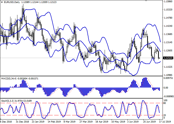 EUR showed a steady decline against USD yesterday, retreating to new weekly lows. The reason for the emergence of negative dynamics was the macroeconomic statistics from Germany and the USA. The ZEW business sentiment index in July decreased from −21.1 to −24.5 points, which turned out to be worse than expectations of −22.3 points. The index of the current economic conditions for the same period decreased from 7.8 to -1.1 points, with a forecast of 5.0 points. The Eurozone sentiment index in July fell from −20.2 to −20.3 points but turned out to be better than the forecast of −20.9 points. Investors were optimistic about US retail sales statistics. In June, the sales of the control group increased from 0.6% to 0.7% MoM, while analysts expected sales to slow to 0.3% MoM. Strong data can help to maintain interest rates at the Fed meeting at the end of July.