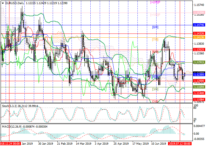 This week, the pair had ambiguous dynamics: first, it dropped to the level of 1.1200, but then growth started. USD is pressured by weak data on the construction market and the difficult situation around the US-PRC trade negotiations. In June, the number of issued building permits decreased from 1.299 to 1.220 million. The new houses construction indicator fell from 1.265 to 1.253 million.