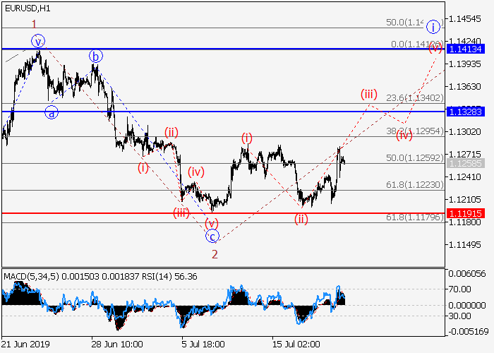 On the 4-hour chart, the first entry wave 1 of (1) of 3 formed as a diverging diagonal triangle, and the correction 2 of (1) of 3 ended. Now, the development of the third wave 3 of (1) has begun, within which the first wave of the lower level (i) of i of 3 has formed, and the correction (ii) of i of 3 has ended. If the assumption is correct, the pair will grow to the levels of 1.1328–1.1413. In this scenario, critical stop loss level is 1.1191.