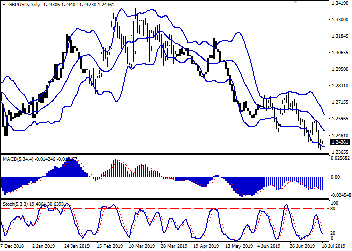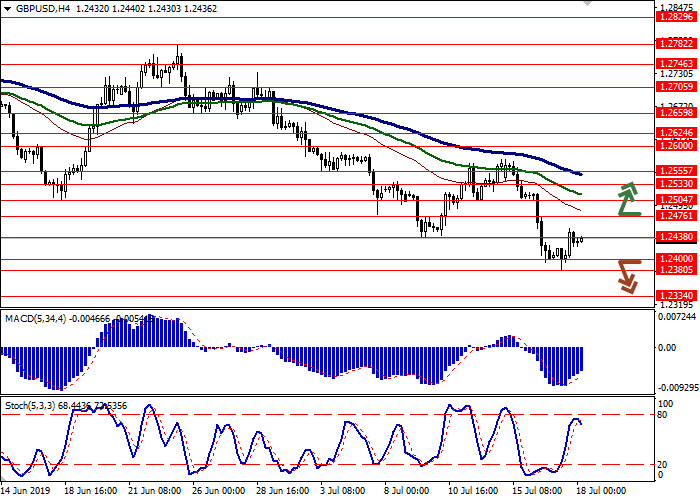 Short positions can be opened after the breakdown of 1.2400 or 1.2380 with the target at 1.2300. Stop loss is 1.2438.