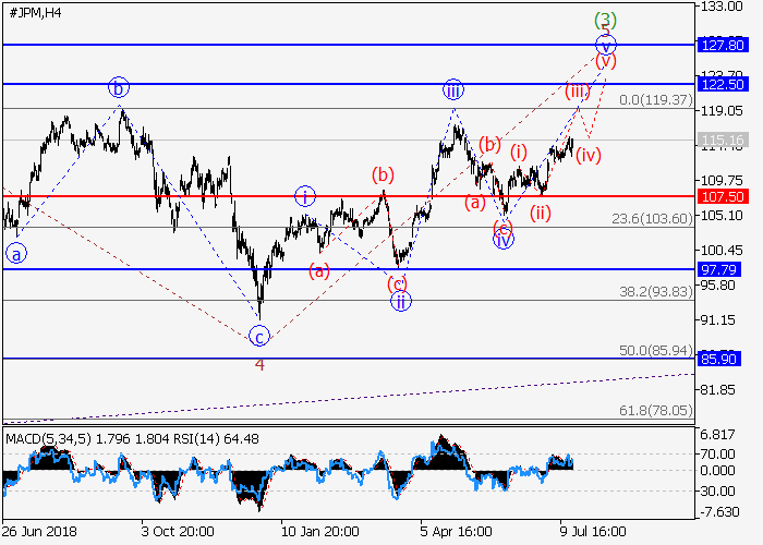 On the 4-hour chart, the fifth wave of the higher level 5 of (3) develops. Now, the fifth wave of the lower level v of 5 is forming, within which the wave (iii) of v is developing. If the assumption is correct, the price will grow to the levels of 122.50–127.80. In this scenario, critical stop loss level is 107.50.
