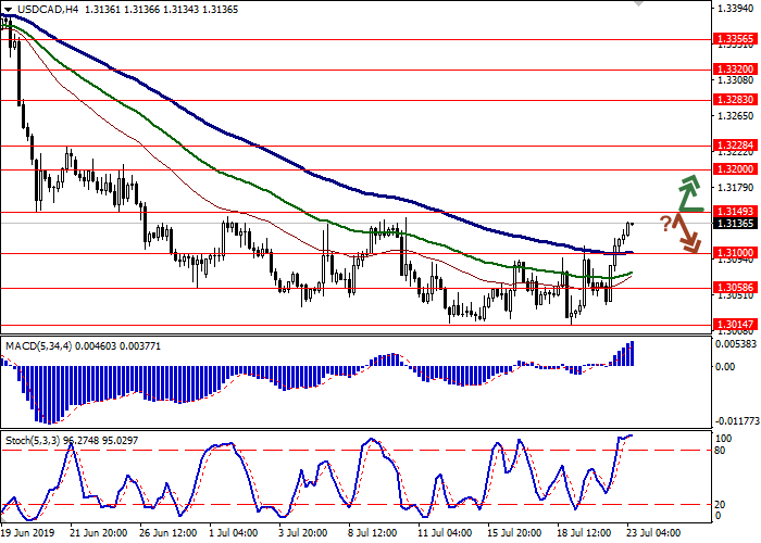 Short positions can be opened after a rebound from the level of 1.3149 and a breakdown of the levels of 1.3120–1.3110 with the targets at 1.3014–1.3000. Stop loss is 1.3150–1.3160.